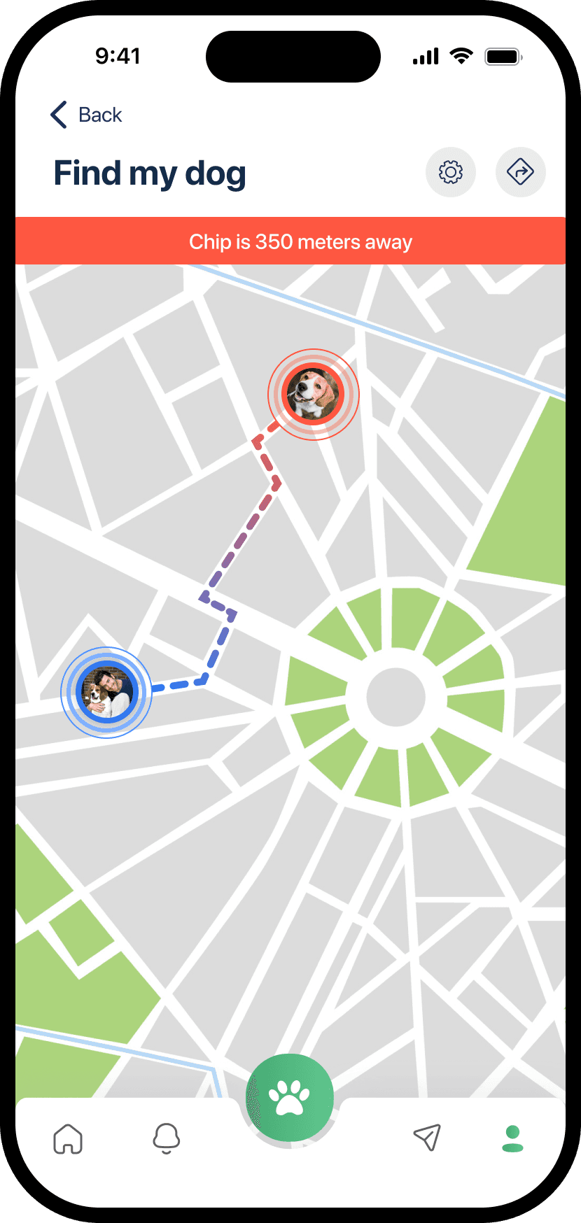 An added layer of security when it matters most. Integrated with third-party GPS collars, this feature lets owners track their dog’s location in real time and navigate to them directly from the app.