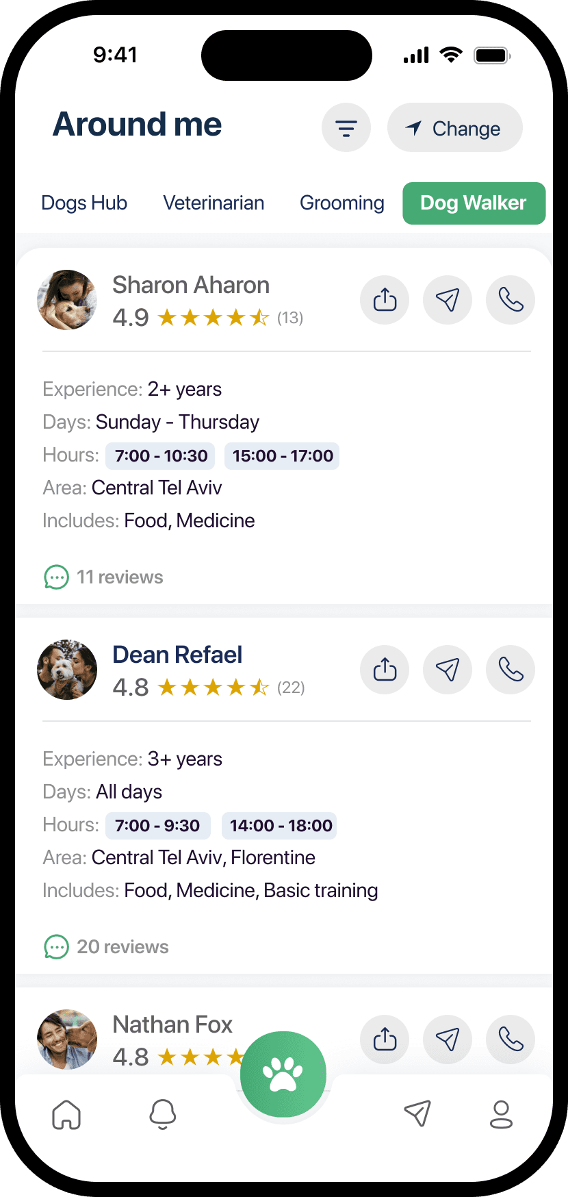 Dog Walker tab offers an easy way to find and contact trusted walkers. In short, this feature is your all-in-one local guide, tailored to make pet ownership simpler and more connected